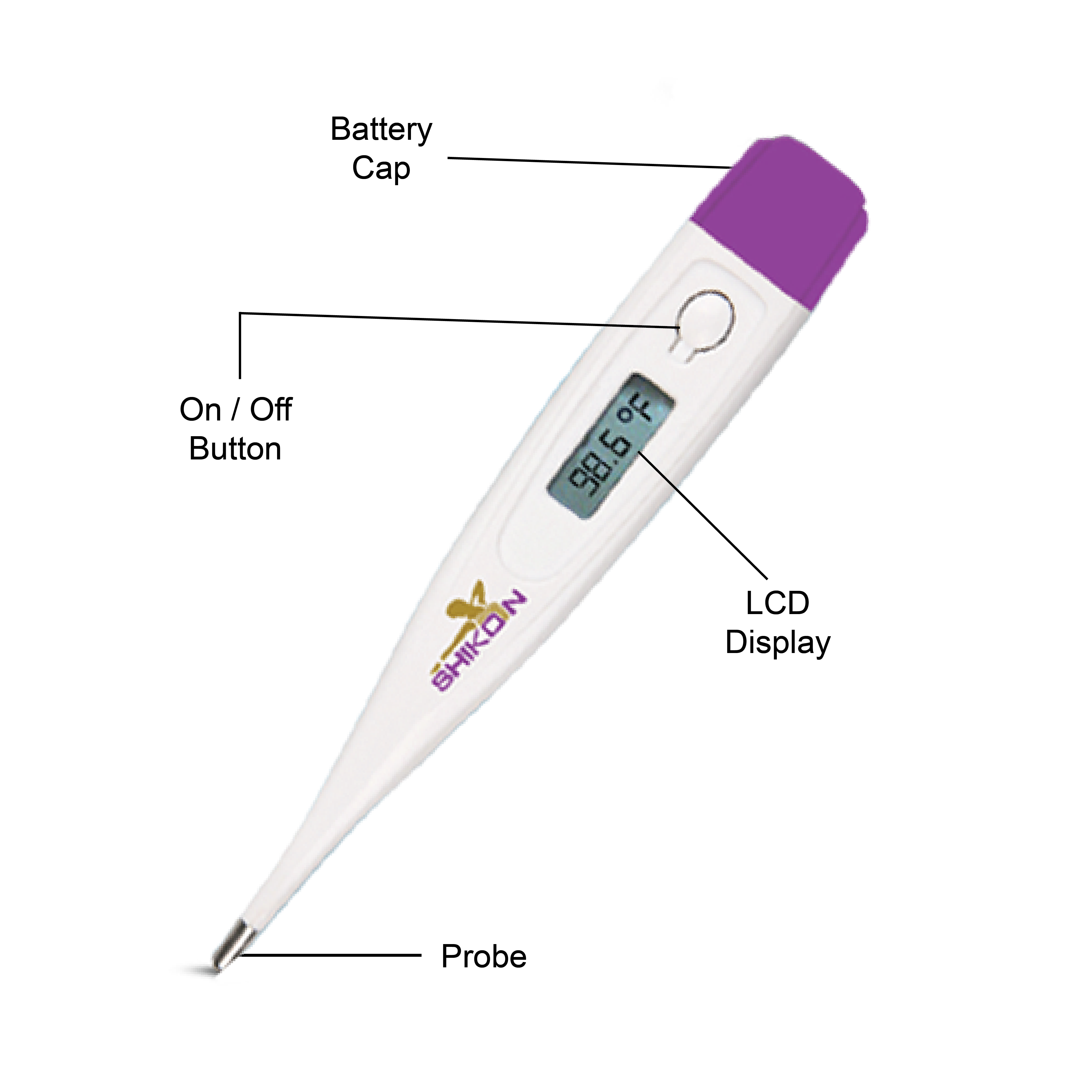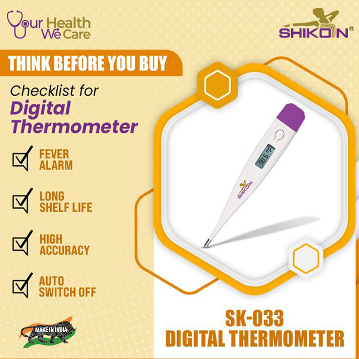 Shikon Digital Thermometer is designed to measure the human body temperature in regular mode orally, rectally or under the arm. It provides quick and accurate reading of the body temperature. It is resuable for clinical or home use by people of all age group including children under 8 yrs old with adult supervision. SHIKON Digital Thermometers are approved by Legal Metrology, Govt. of India and covers with a 2 years replacement warranty with a large after sales service network.